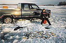 Crappies (pron.: /?kr?pi?/ or /?kr?pi?/)[1][2] are a genus, Pomoxis, of freshwater fish in the sunfish family Centrarchidae. There are two species, the type species Pomoxis anularis, the white crappie, and the black crappie, P. nigromaculatus. Both species are popular game fish. genus name Pomoxis derives from the Greek ???? (cover, plug, operculum) and ???? (sharp). The common name (also spelled croppie or crappé), derives from the Canadian French crapet, which refers to many different fishes of the sunfish family. Other names for crappie are papermouths, strawberry bass, speckled bass or specks (especially in Michigan), speckled perch, calico bass (throughout New England),[3] sac-au-lait (in southern Louisiana, lit "bag of milk")[4] and Oswego bass.